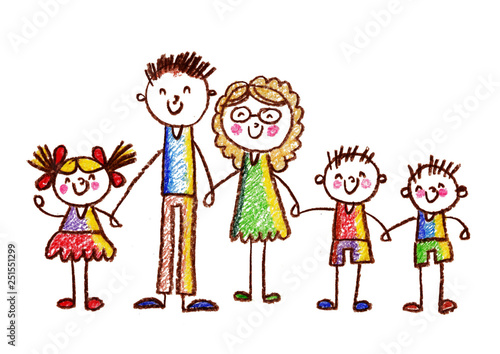 Kids Drawing Happy Family Holding Hands Mother Father Sister
